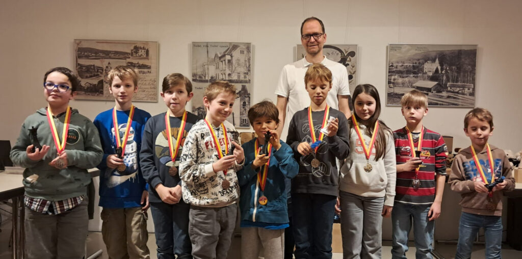 Die Rekordteilnehmerzahl von insgesamt 63 Kindern brachte das Organisationsteam ordentlich ins Schwitzen. Zusätzliche Tische und Spielgarnituren mussten kurzfristig organisiert werden und die letzten 3 Bretter des Anfängerturniers mussten aus Platzmangel ins Atrium ausweichen. Aber am Ende musste kein Kind abgewiesen werden und alle konnten am Turnier teilnehmen.
